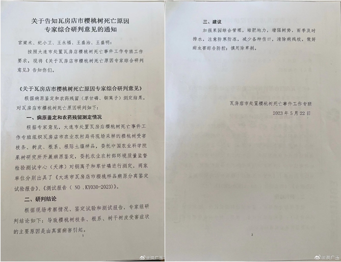 这就是真实发生在大连的樱桃树死亡事件、假劣农资事件。樱桃种植是大连市的重要产业之一,这些种植大户作为大连市的经济发展成员,都能遭遇如此不公待遇,大连市的营商环境能好吗?